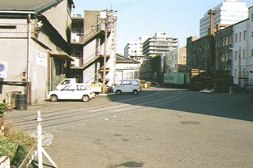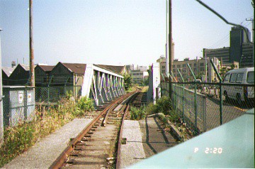 (2)新興橋梁手前の踏切から桜木町方面への線路(1994年撮影)