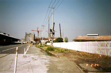 横浜博覧会開催時に駅のあった付近。この背後は駐車場になって