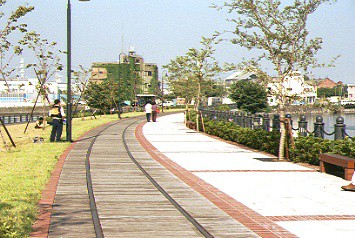 赤れんが倉庫をぬけ、山下公園、山下埠頭へとぬける線路がありました。