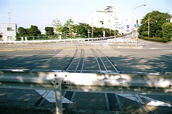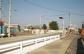 (1)新興橋梁手前の踏切(1994年撮影)