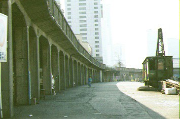 山下公園内は高架が残っているが、山下埠頭側は駐車場になって
