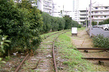 【建物の合間を縫って線路は続きます】