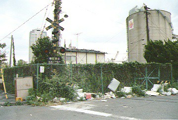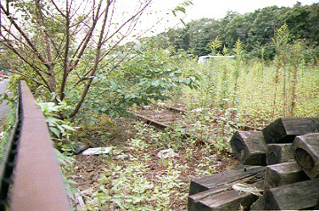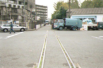 【まっすぐ行くと、そこは駐車場なのですが、一部線路と枕木がありました】